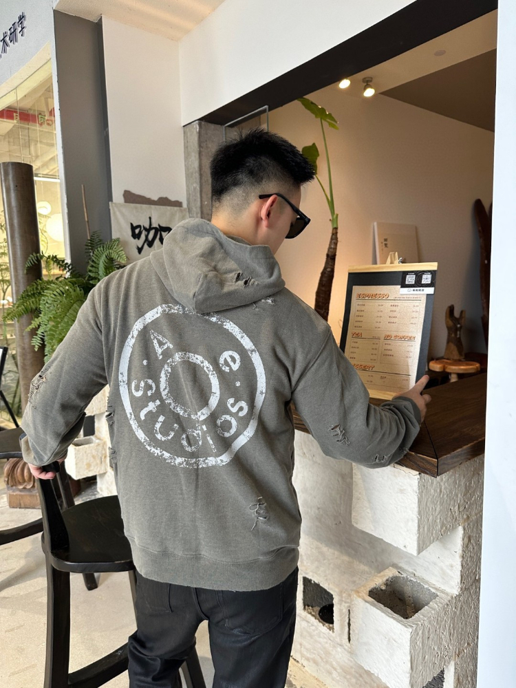 Home > Acne Studios new zip-up distressed and ripped hooded sweatshirt-5445