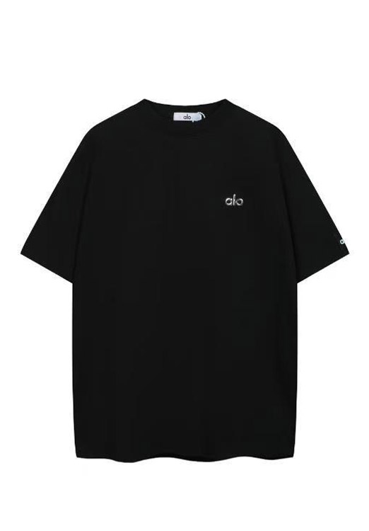 ALO Foamed Letter Hot Stamped Silver Short-Sleeved Crew Neck T-Shirt-5096