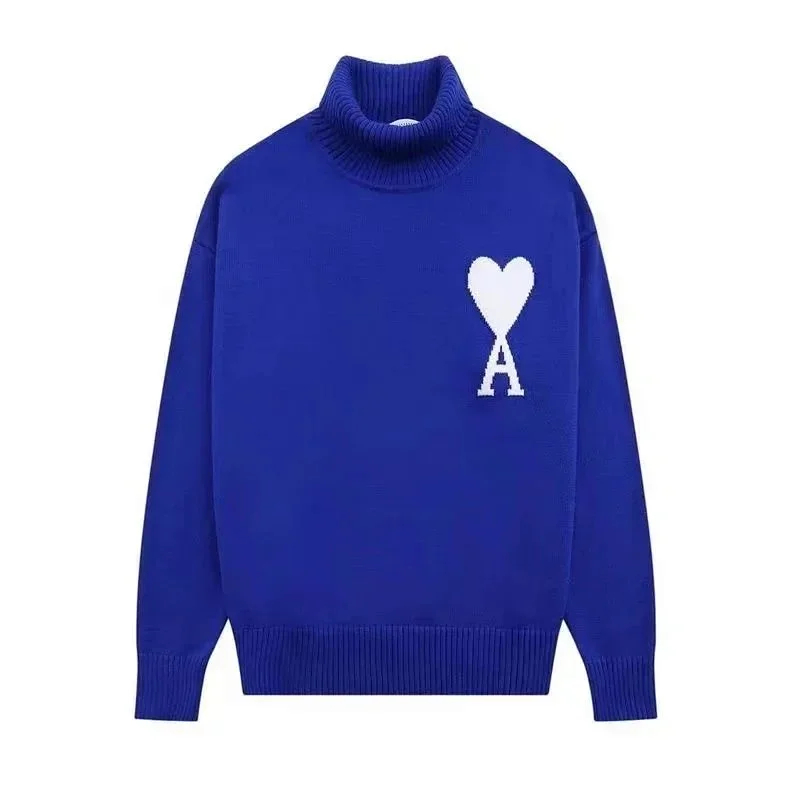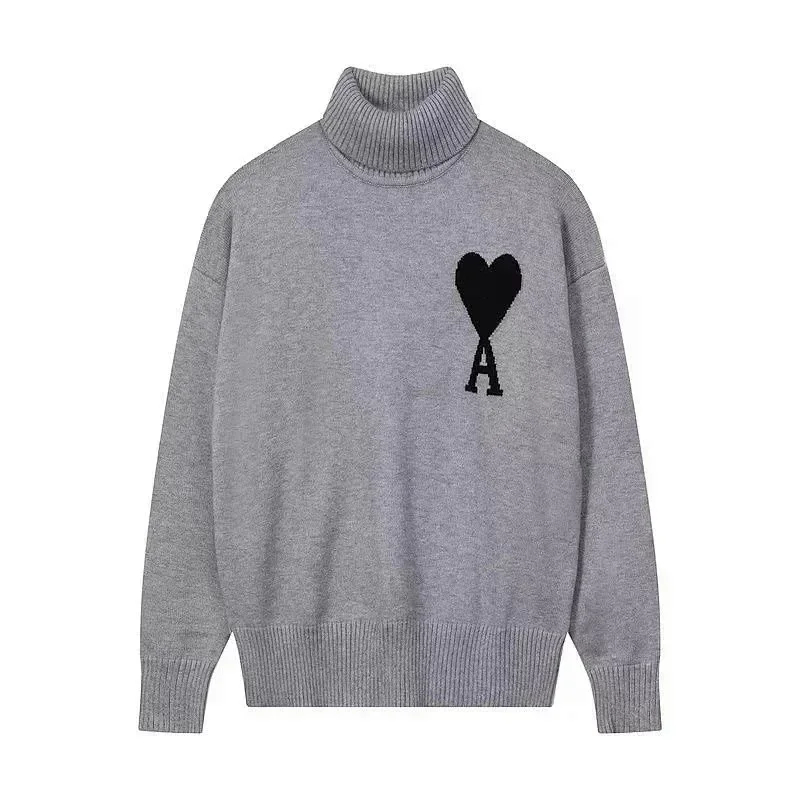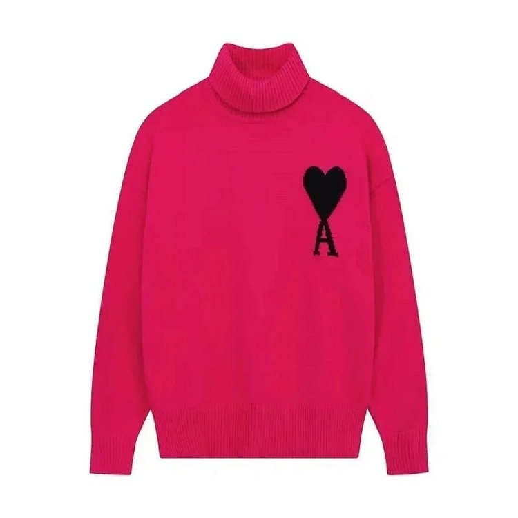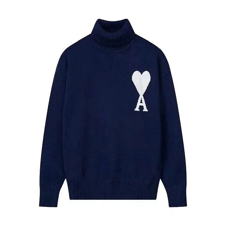 AMIPARIS Intarsia Knit High-Neck Pullover Solid Color Wool Sweater-5150