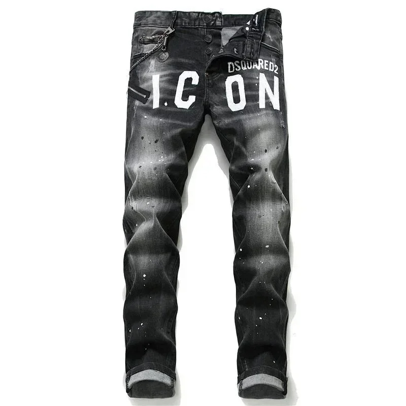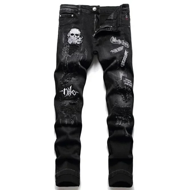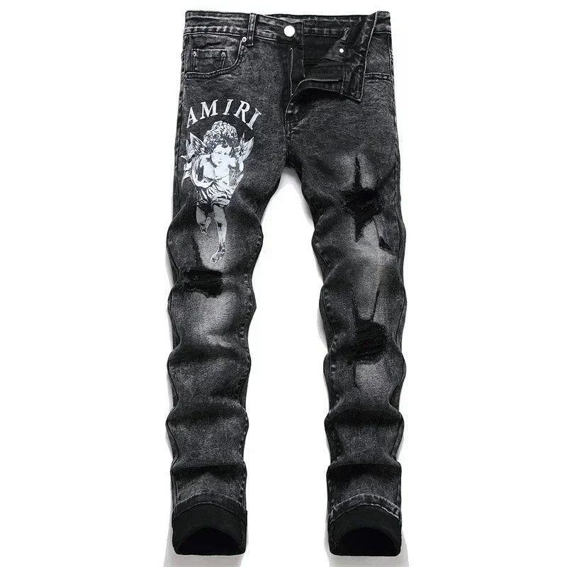 AMIRI new foreign trade style fashion blue ripped patch embroidery elastic mid-waist slim-fit men's jeans (5 styles)-2432