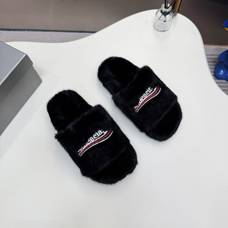 Home > Balenciaga new embroidered logo fur-lined slip-on sandals-5690