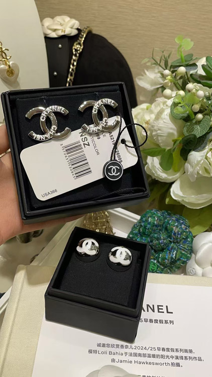 Chanel White Enamel Double C Silver Earrings-3743