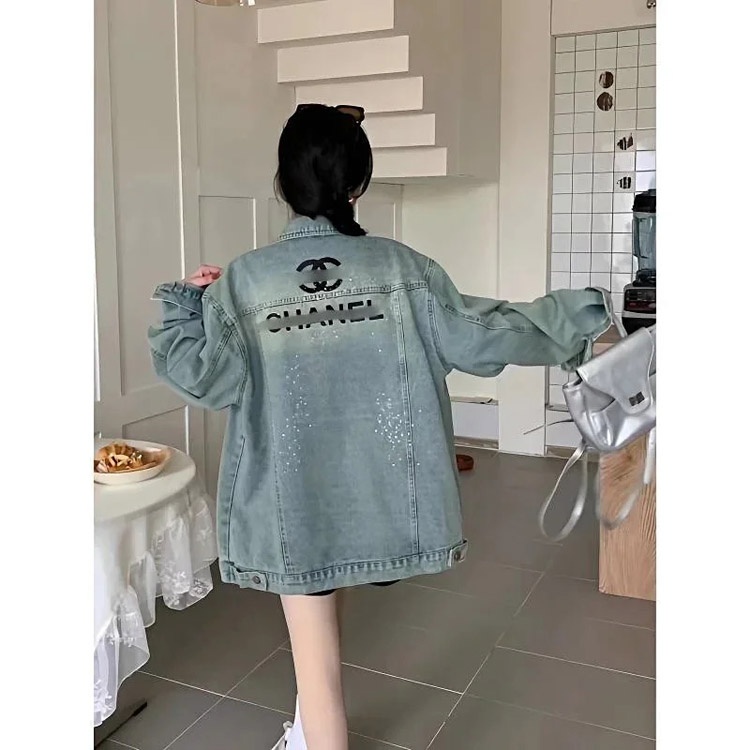 Chanel's new heavily embellished denim jacket with rhinestone lettering and embroidery-5119