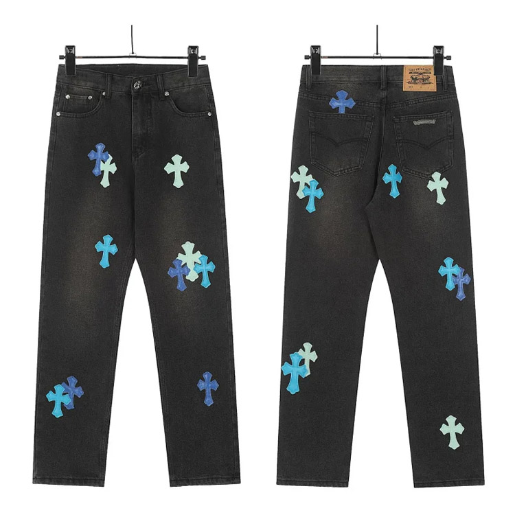 Chrome Hearts CH Appliqué Embroidered Washed Loose-fitting Jeans-4939