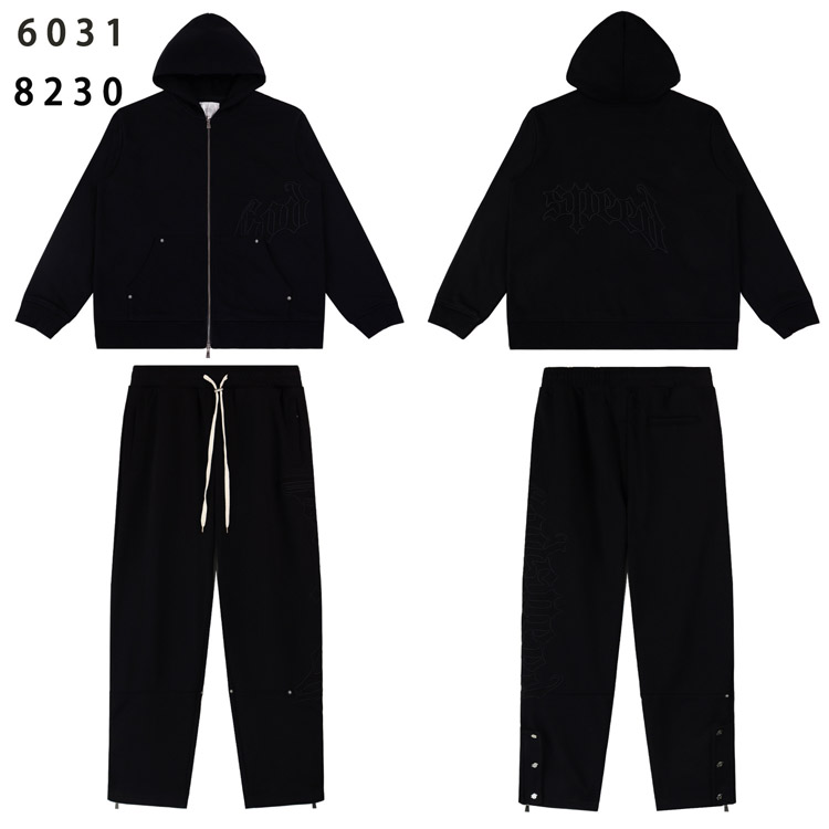 GODSPEED American Streetwear Simple Letter Cardigan Hooded Set-4556
