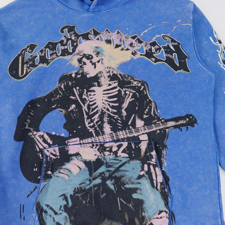 Godspeed Skull Print Casual Crew Neck Hooded Sweatshirt-4563