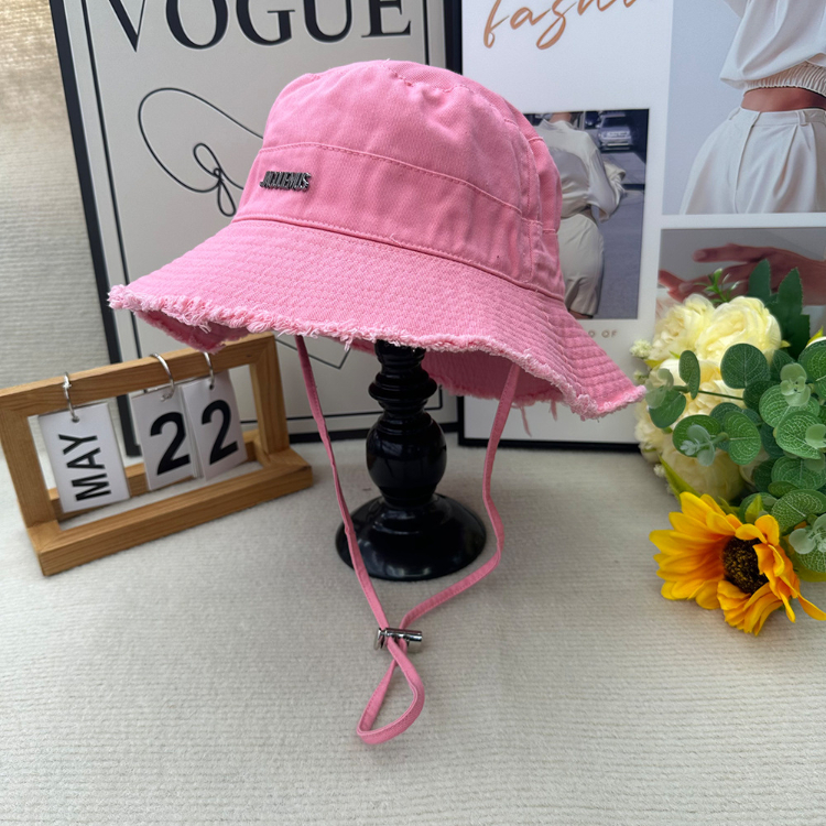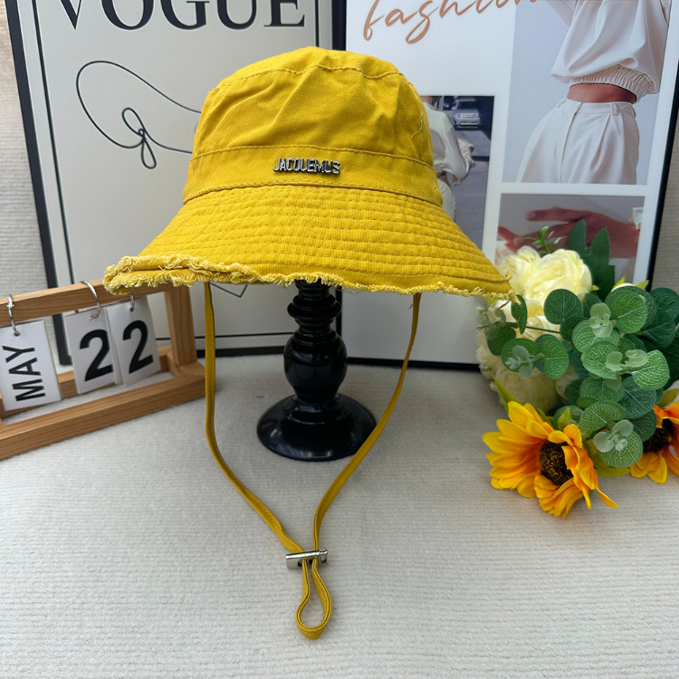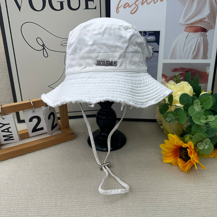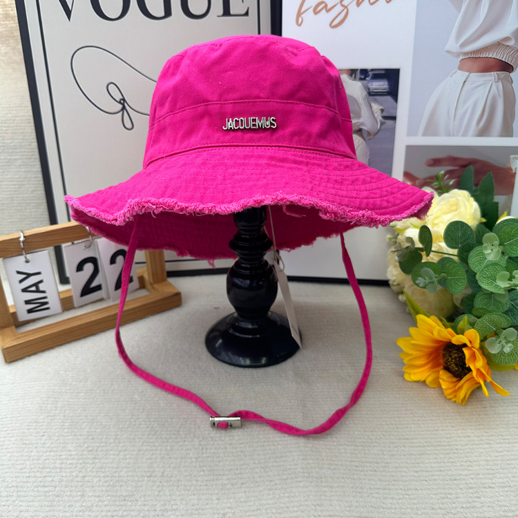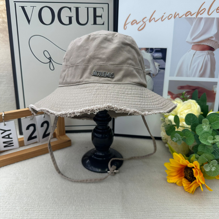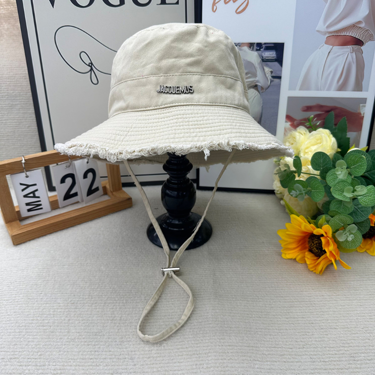 Home > Jacquemus frayed-edge wide-brimmed bucket hat with drawstring-5982