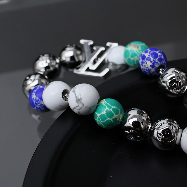 Home > Louis Vuitton LV colorful beads letters stitching floral bracelet with metal chain-3557