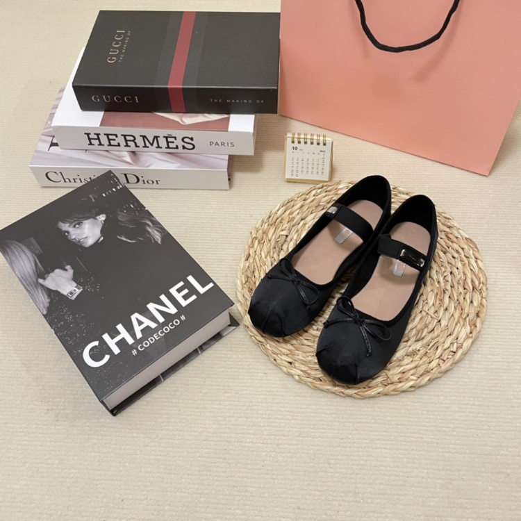 Miu Miu new silk flat ballet shoes with bow detail-5717
