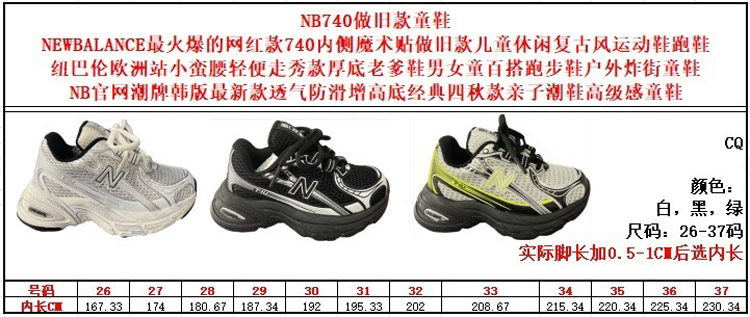 New Balance NB 740 Classic Simple W Wide Children's Running Shoes-4159