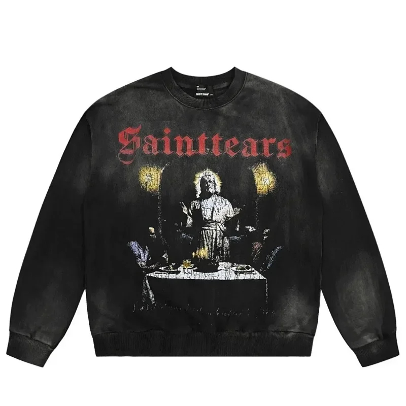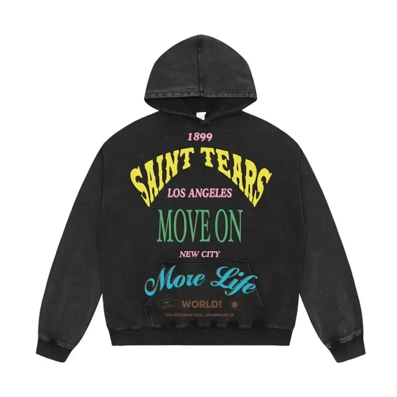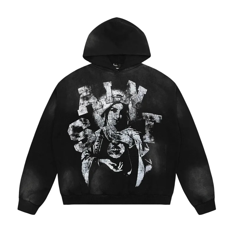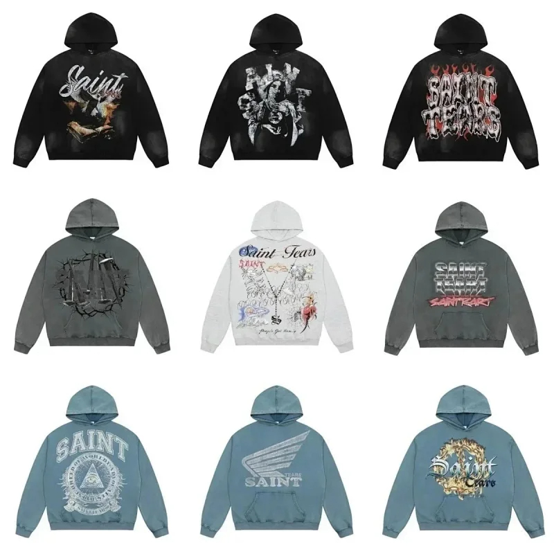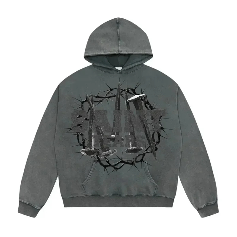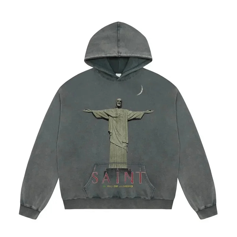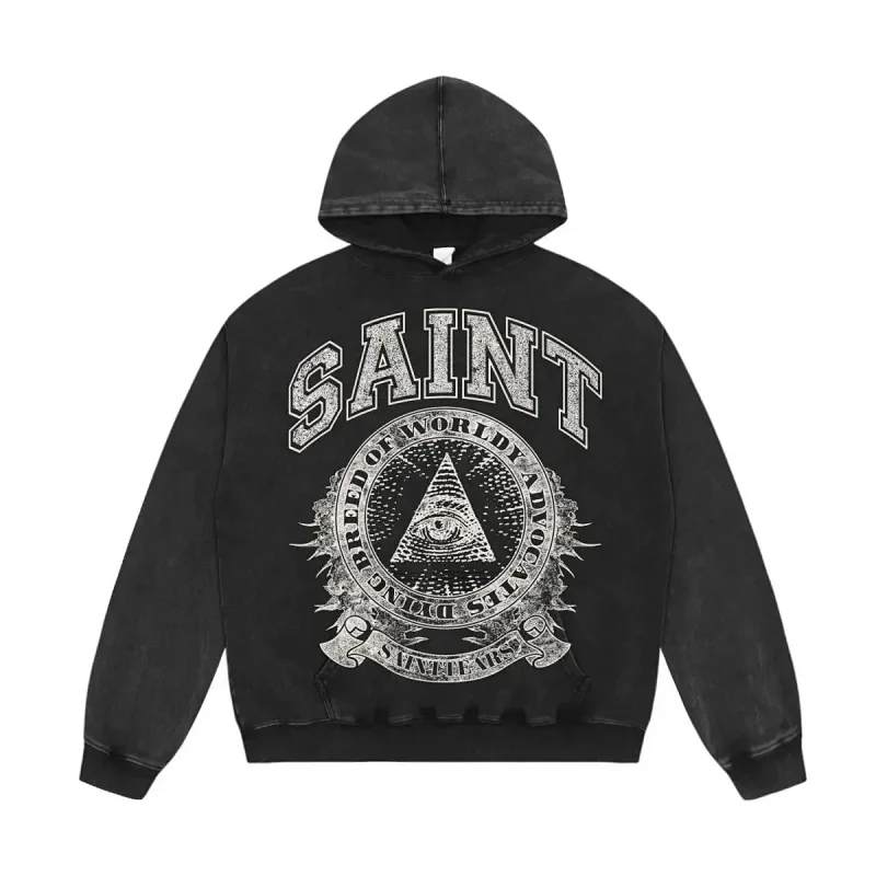 Saint Michael Simple casual loose long-sleeved hooded sweatshirt-2562