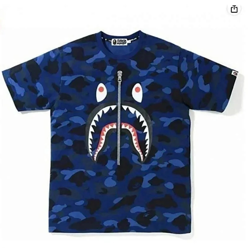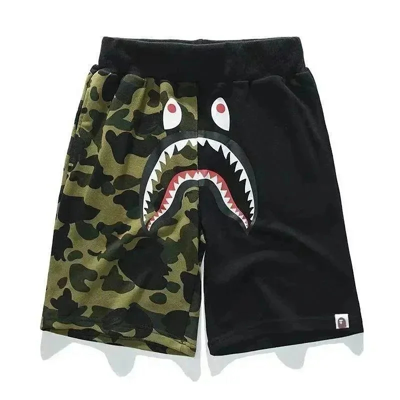 Bape shark zipper letter full print camouflage pattern short-sleeved T-shirt shorts set-2818