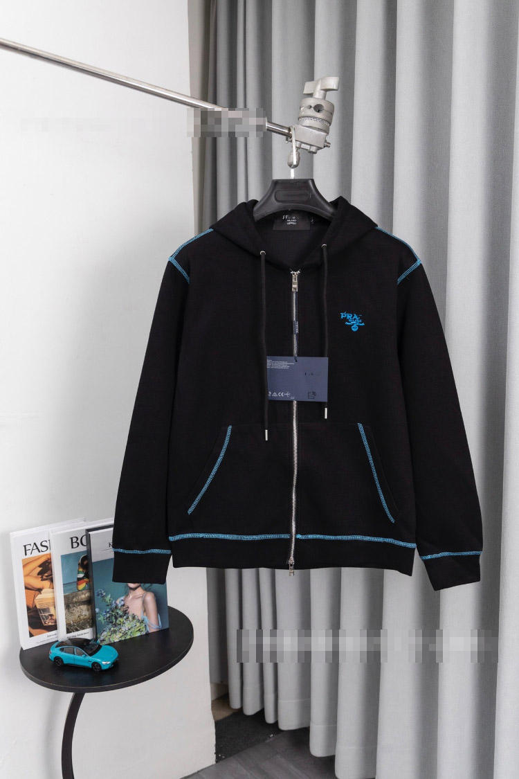Prada new metal triangle logo multi-pocket jacket with zipper closure-5322