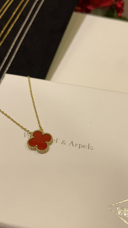 Home > Van Cleef & Arpels Carnelian Four-Leaf Clover Gold Necklace-3888